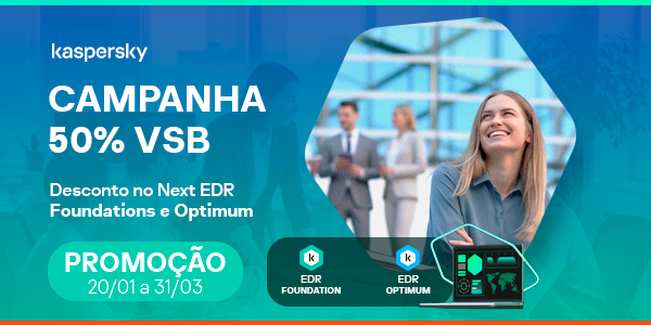 Aproveite nossa super campanha e garanta 50% de desconto nas soluções Kaspersky Next EDR Foundations e Optimum.